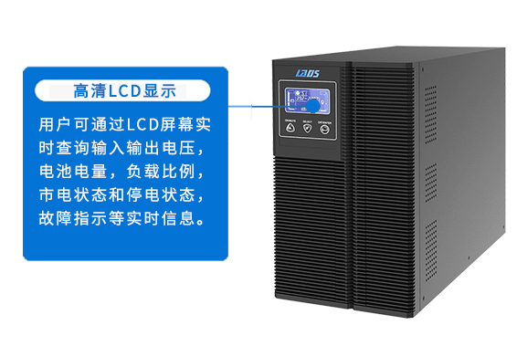 用戶可通過LCD屏幕實時查詢輸入輸出電壓,電池電量,負載比例,市電狀態和停電狀態,故障指示等實時信息。